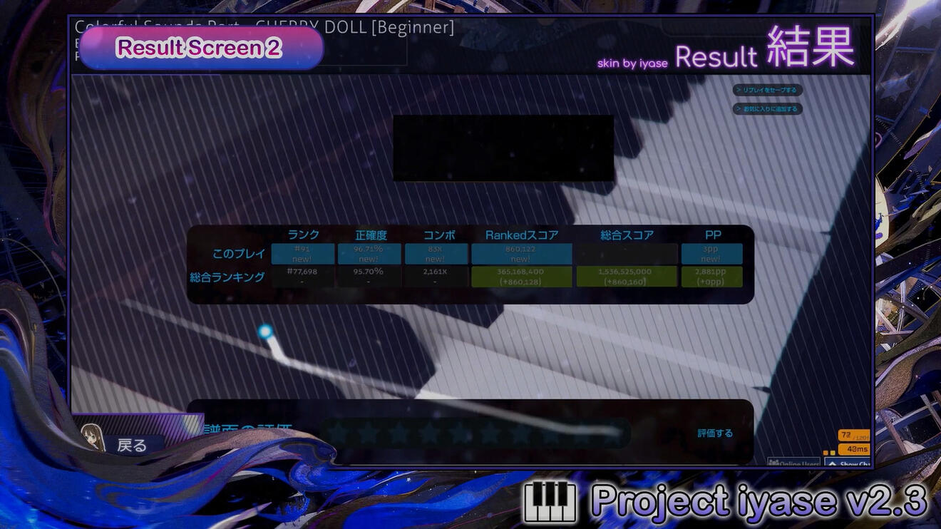 • 2024.5.30 → 1 digit (Rank #9, Top 10 Global) Soundsphere 10-Keys Leaderboard